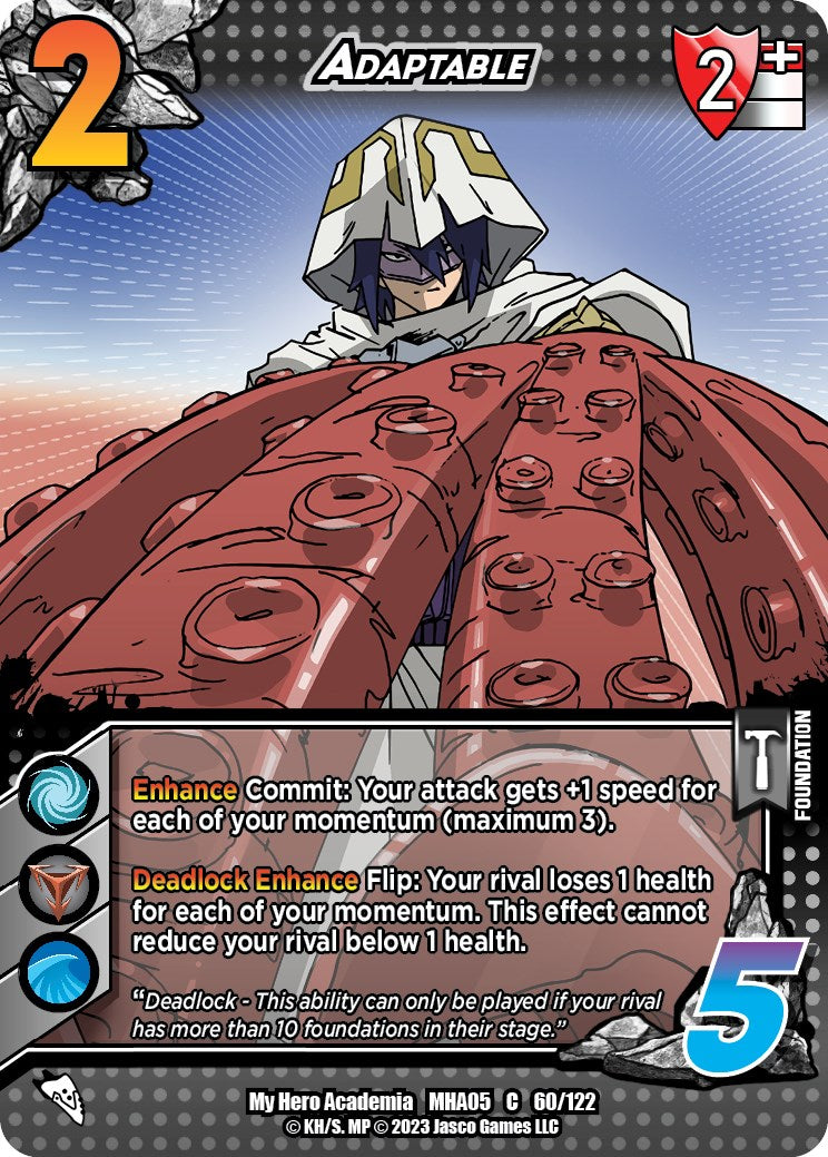 Deadlock Enhance Flip: Your rival loses 1 health for each of your momentum. This effect cannot reduce your rival below 1 health."Deadlock - This ability can only be played if your rival has more than 10 foundations in their stage."
