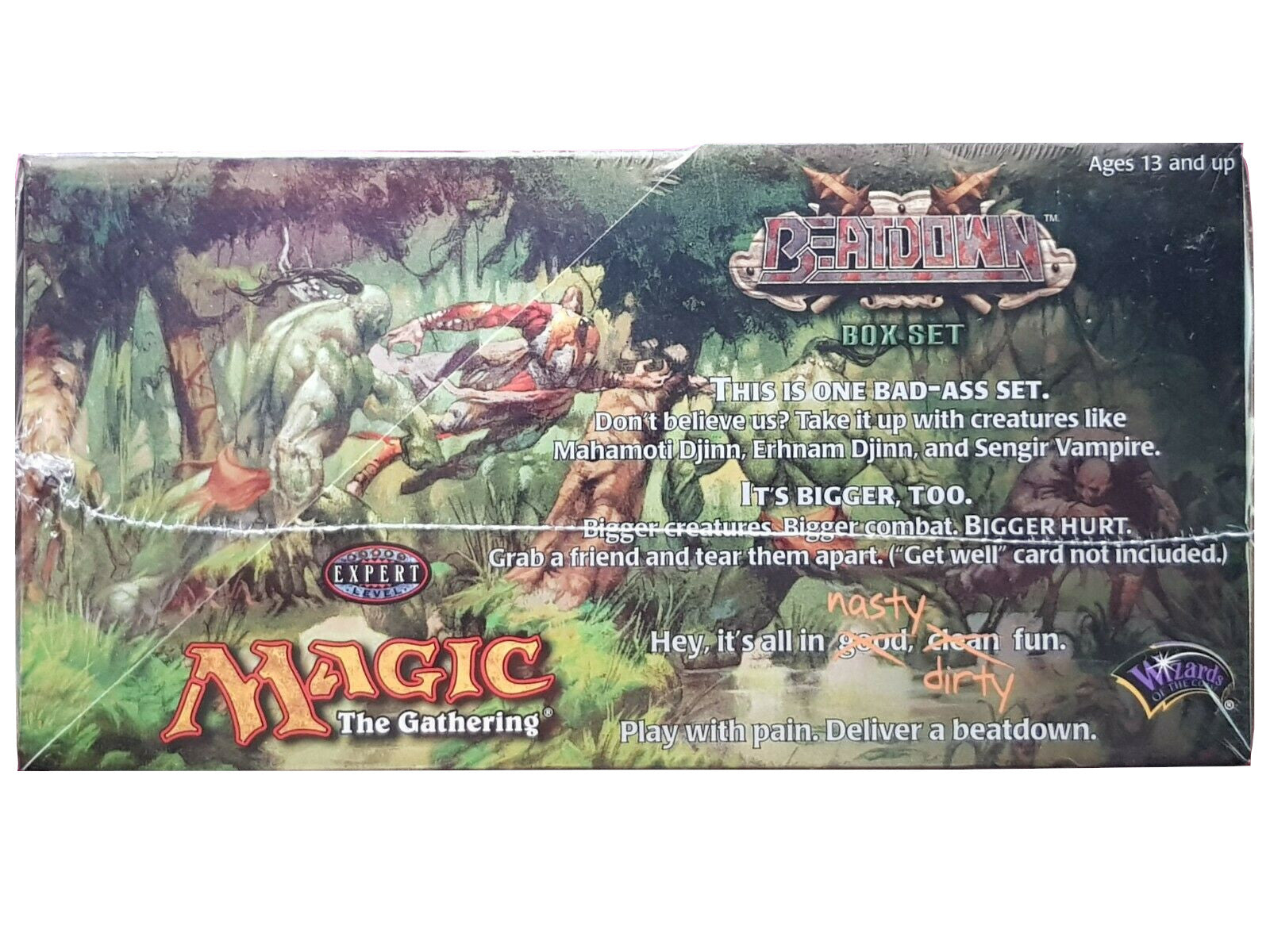This Beatdown box also makes a handy carrying case anytime you need to open up some whup-ass: it's able to hold 900 cards in standard-sized sleeves or 12 60-card decks.